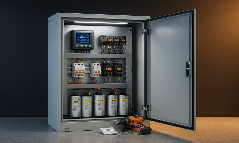 Şekeroğlu Mühendislik olarak, endüstriyel tesislerinizde reaktif güç kayıplarını minimize eden kompanzasyon sistemleri kuruyoruz. Kondansatör, kontaktör ve dijital analizörlerle donatılmış panolarımız sayesinde enerji maliyetlerinizi düşürür, sistem güvenliğinizi artırırız.